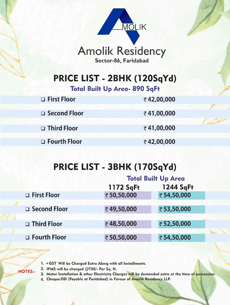 At Amolik Residency, we believe in complete transparency. Our competitive pricing structure ensures you get the best value for your investment in a prime location.
